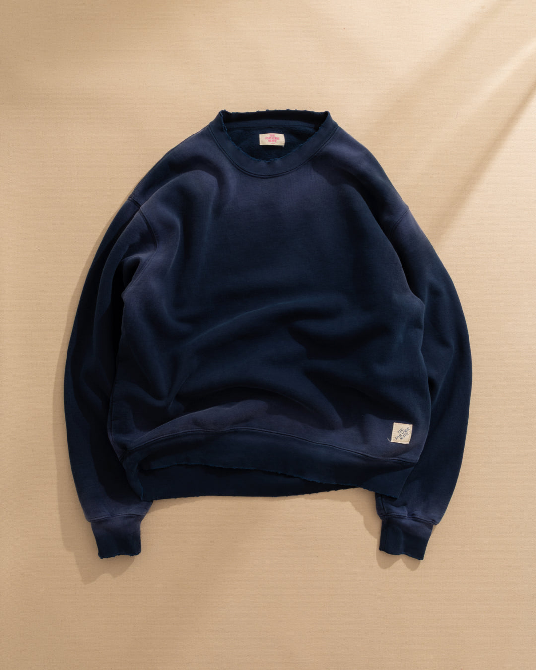 Garment dyed with phosphorus spay at seams—"