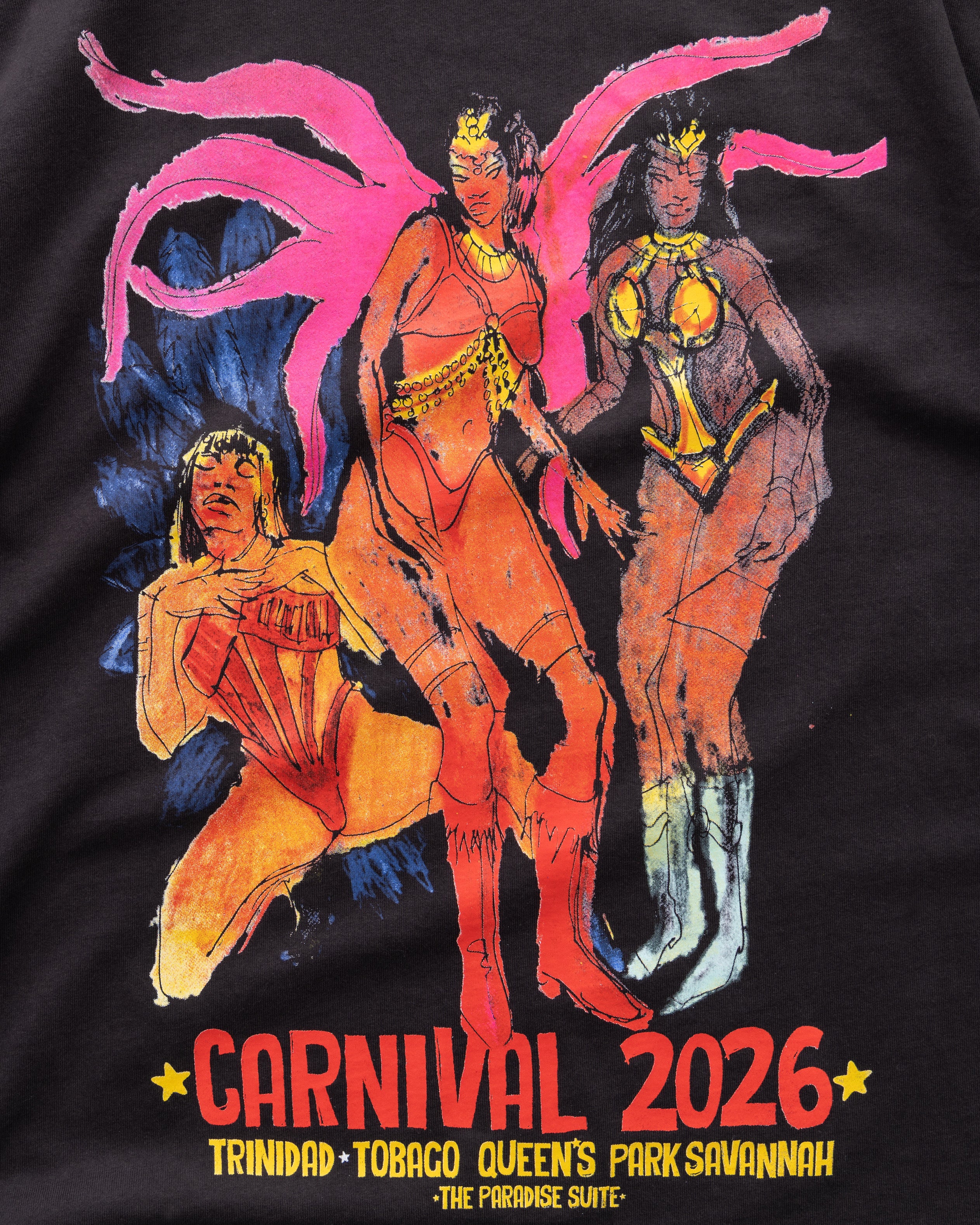 An homage to culture, confidence, and unapologetic energy. The Pretty Mas Tee features original hand-painted artwork created exclusively for The Paradise Suite by Mike Hobbs (@hobbzilla)— capturing the essence of Carnival in motion, power in poise, and beauty without restraint.